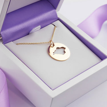 The central section of the pendant is a precision outline of the Island's famous coastline and shape and includes an 18-inch chain in 9ct yellow gold. On the reverse, a small hallmark includes the 375 gold stamp.