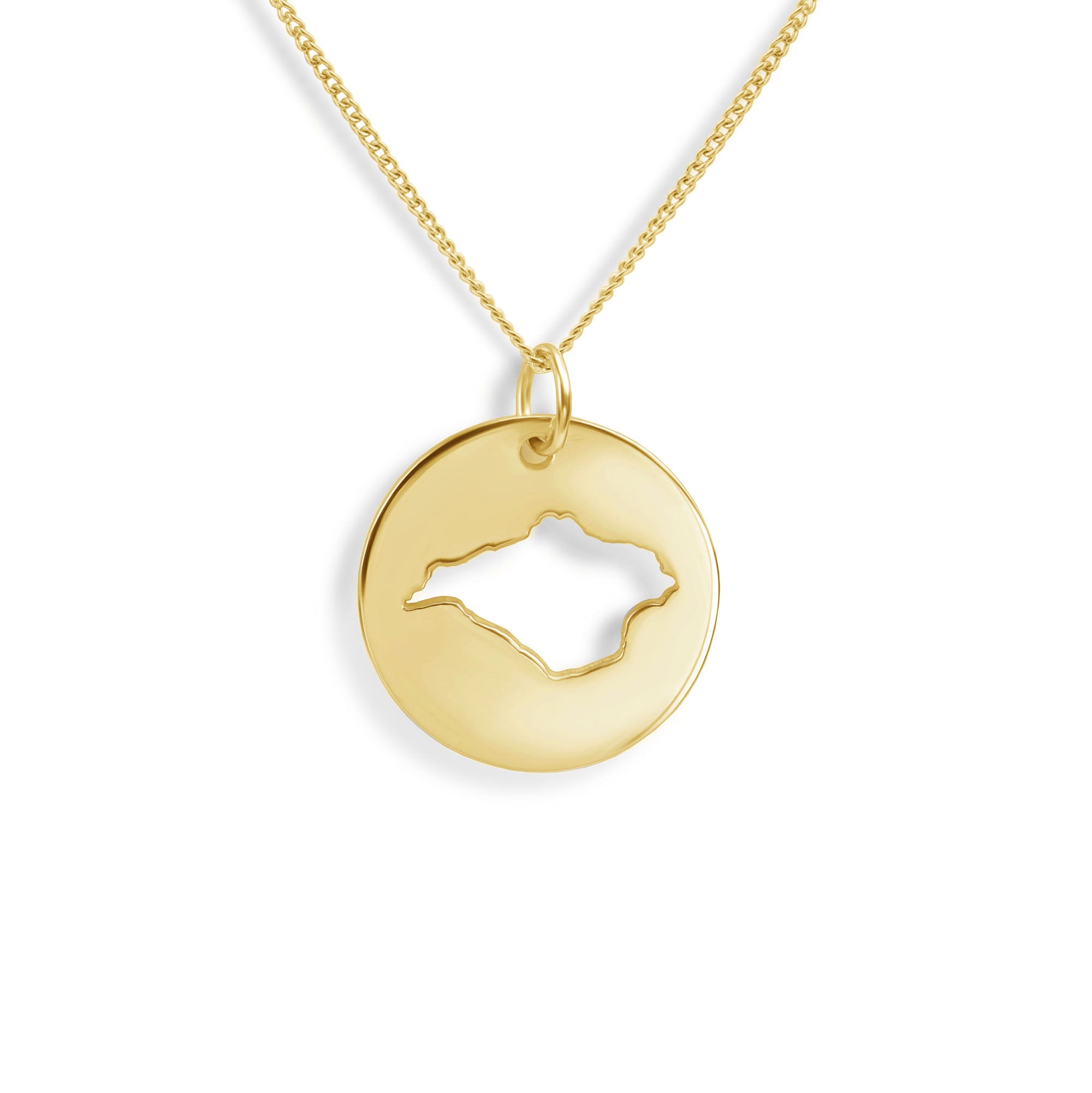 This beautiful keepsake of the Isle of Wight features a 2cm circular disc of 9ct yellow gold, with a cutout shape of the Isle of Wight coastline.