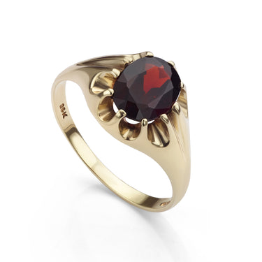Oval Garnet Ring – 9ct Yellow Gold (2ct, Claw Set, Hallmarked)