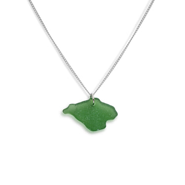 Bottle Green Isle of Wight Shaped Sea Glass Necklace