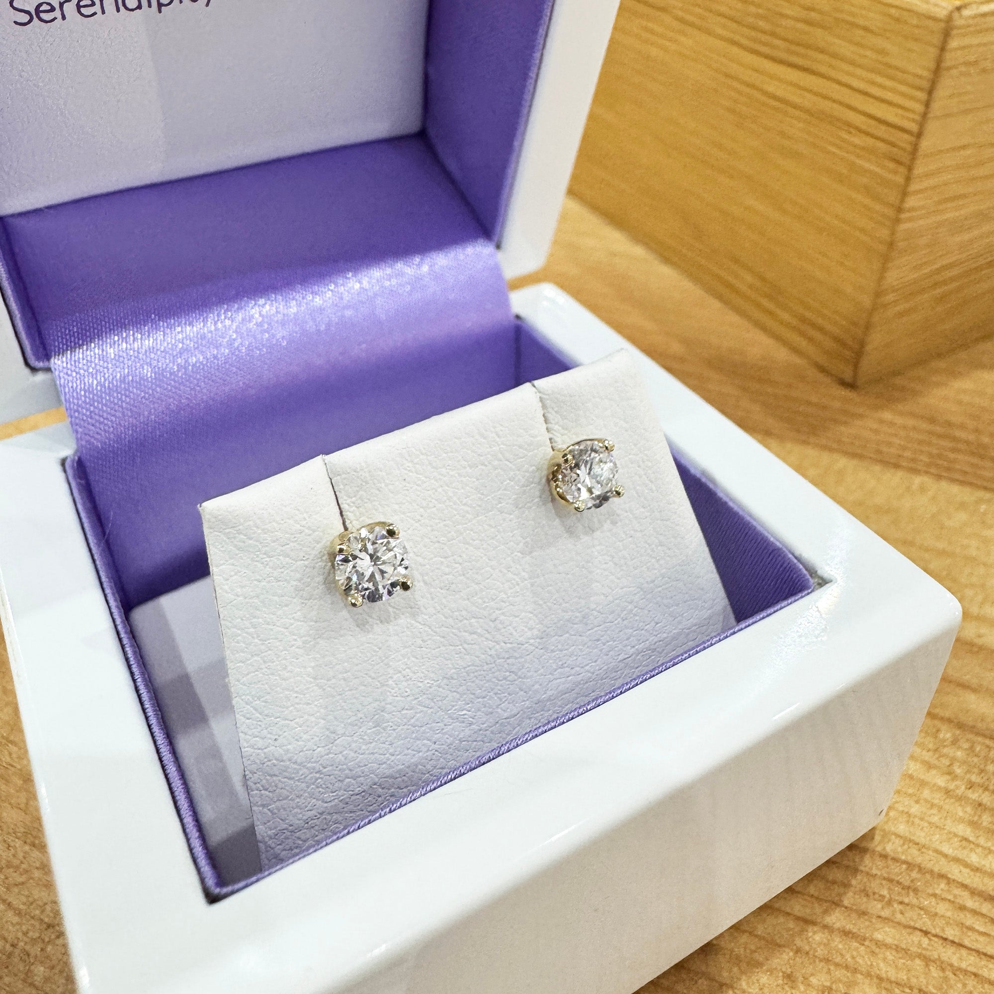 This elegant pair of diamond stud earrings forms part of the Serendipity Diamonds showroom collection, ready-made and ready to go. The popular "Paris" earring design features a pair of ethical lab-grown diamonds, 0.26cts each, weighing 0.52cts in total. The diamonds are set into 9ct Yellow Gold and include full IGI certification, graded D colour and VS1 clarity for exceptional whiteness and purity.