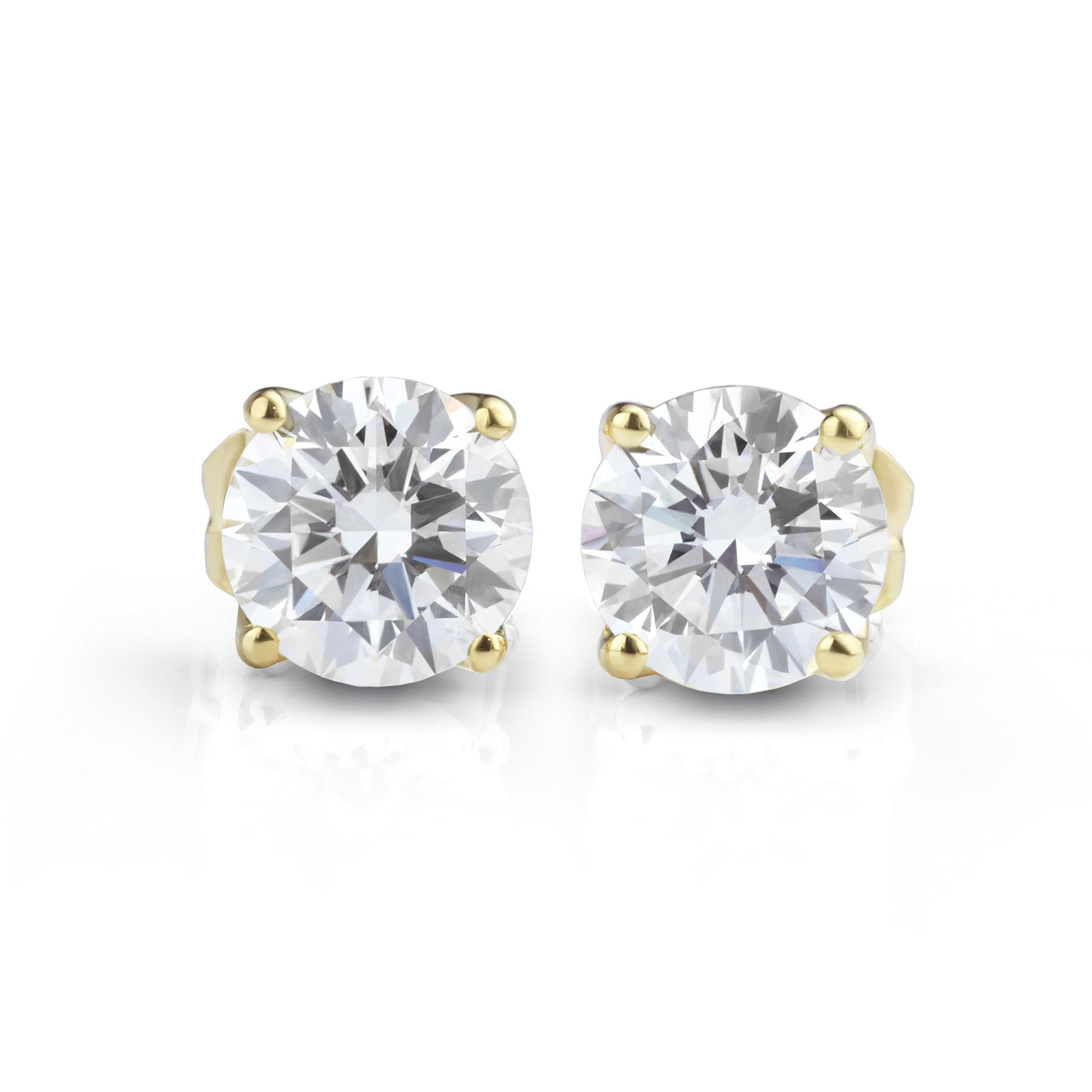 These stunning diamond stud earrings feature D-colour, VVS2-clarity diamonds, precision-cut for exceptional fire and brilliance. Secured in a contemporary four-claw setting made from polished 9ct yellow gold, they are designed for both comfort and confidence with classic butterfly posts and an additional pair of LOX secure backs included.