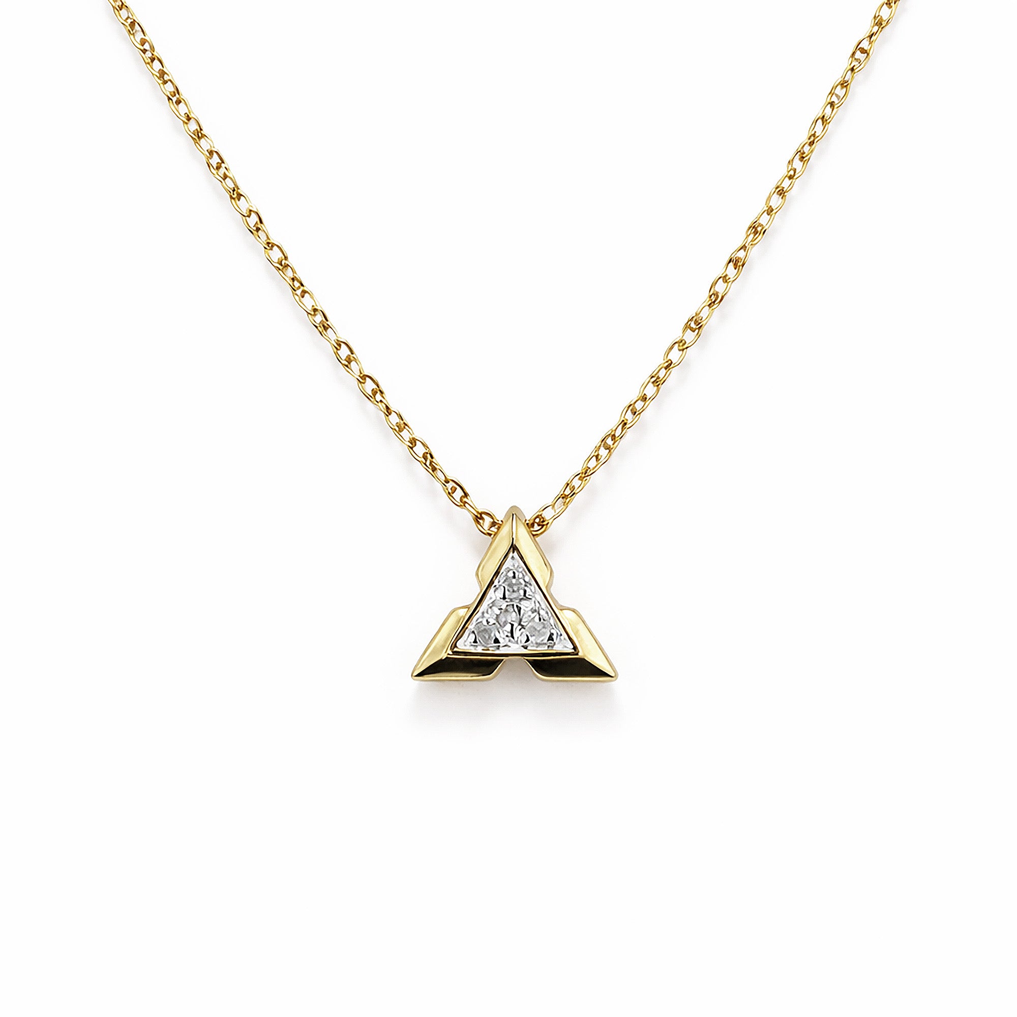Rare and unusual, this beautifully minimal diamond pendant is crafted in 9ct yellow gold, designed in a distinctive triangular form. The pendant features a modern slider-style design, allowing the chain to pass smoothly through the back so the pendant sits neatly and elegantly when worn.